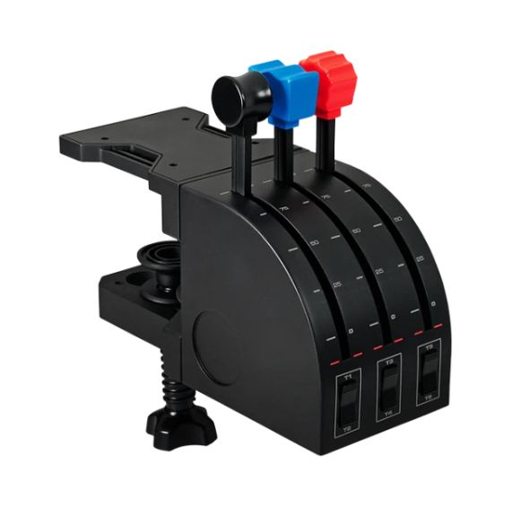 Si te gusta pilotar aeronaves multimotor, habrás notado que sería muy útil otro par de aceleradores en la mayoría de simuladores de controlador de vuelo. El cuadrante de aceleración para vuelo es la solución, con tres palancas adicionales que aumentan el control de motores, flaps, tren de aterrizaje, deflectores o cualquier otro eje programable. También hay tres conmutadores bidireccionales en la base del cuadrante que crean un total de nueve comandos programables. Agrégalo a Logitech G Flight Yoke System para duplicar los ejes de aceleración.